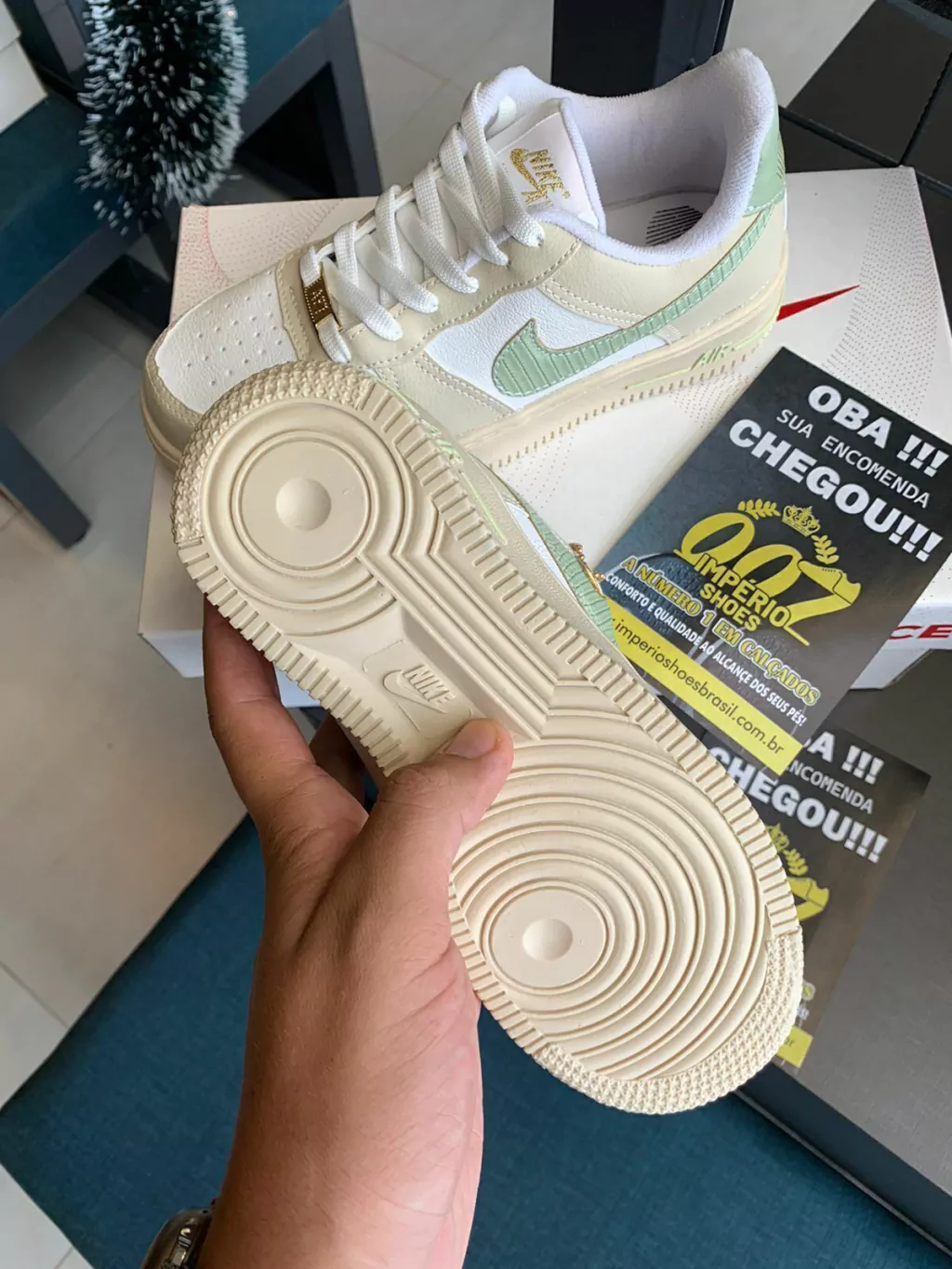 - MODELO AIR FORCE 1, SOLADO DE BORRACHA, TODO EM COURINO, ACOMPANHA CADARÇOS EM ELASTANO E PLAQUINHA AF1.