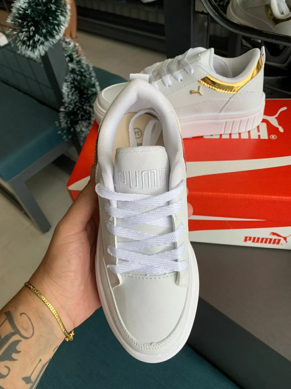 - MODELO PUMA, SOLADO DE BORRACHA, TODO EM COURINO, ACOMPANHA CADARÇOS.